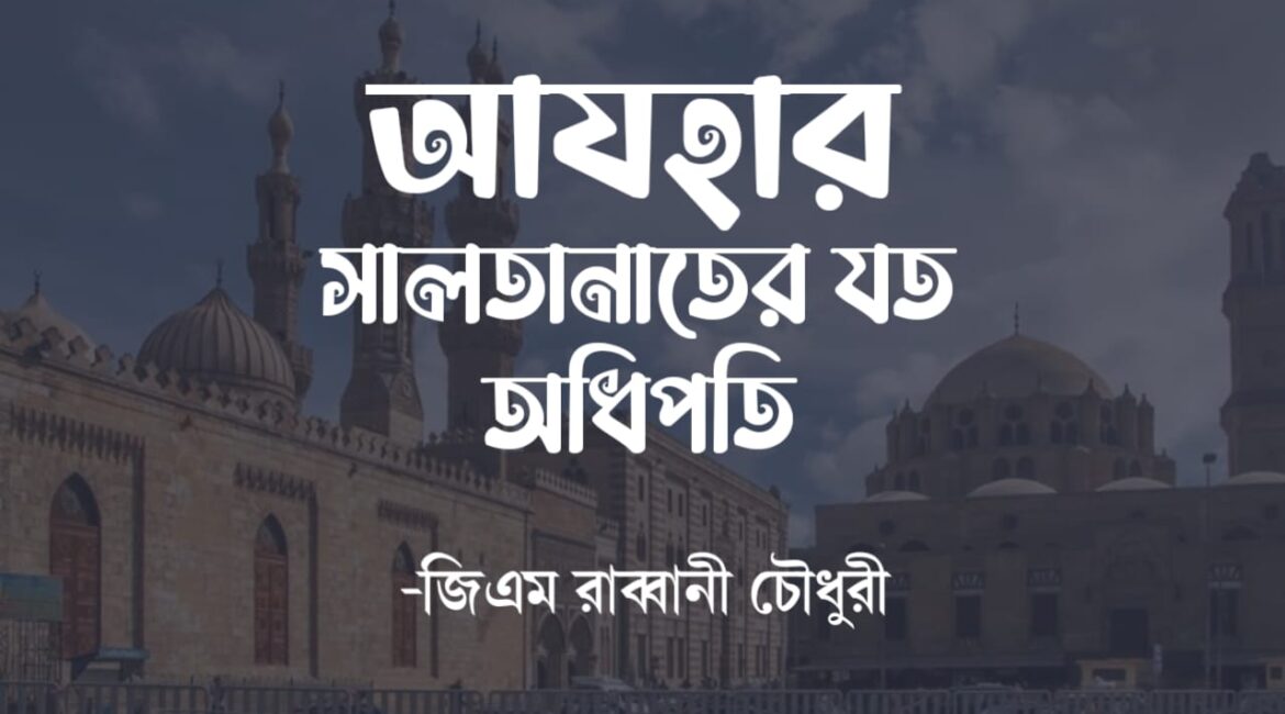 শতাব্দীর চক্রাকার ঘূর্ণয়ন এখনো অবিরত। ইতিহাসের কতশত খোরাক জোগানো হয়েছে! কত মনিষীর জীবনী-শক্তি রোপন করা হয়েছে! কত রাজা মাহারাজাকে আপন গৌরবে ধন্য করা হয়েছে, কত জ্ঞান-সন্ন্যাসীর ইলমি পিপাসা নিবারণ করা হয়েছে! হাজার বছর ধরে শুধু দেয়াই হচ্ছে,  অথচ সামান্যটুকু আবেদনও এখন অবধি কমেনি। যেভাবে চলছে, উত্তরোত্তর খ্যাতি আর সুনামে যে নিজেকে ছাড়ানোই এখন কেবল লক্ষ্য; তা আর বলার অপেক্ষা রাখেনা। জামেয়াতুল আযহার। আল-আযহার বিশ্ববিদ্যালয়।